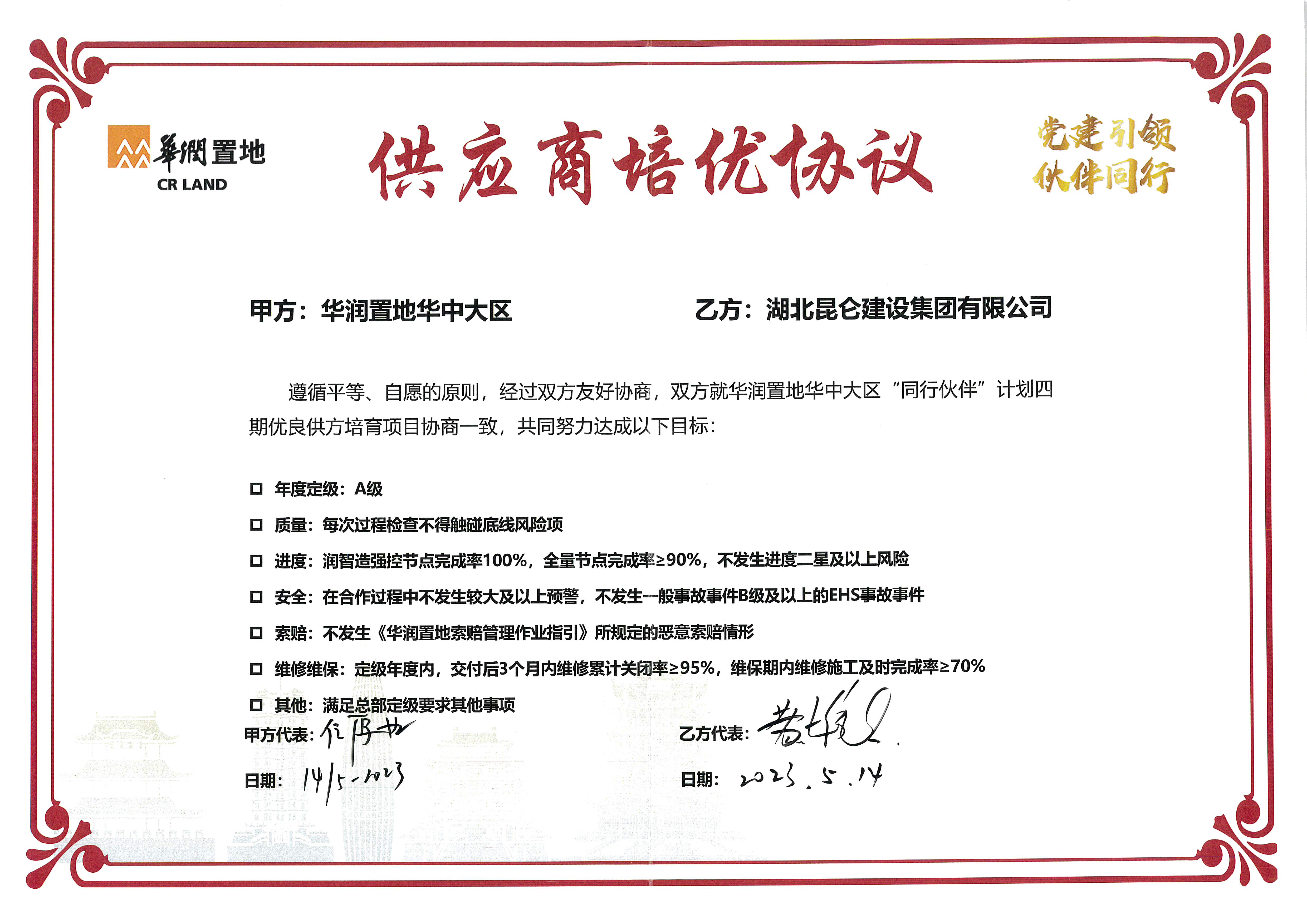 2023年5月14日簽署華潤置地華中大區(qū)(供應(yīng)商...